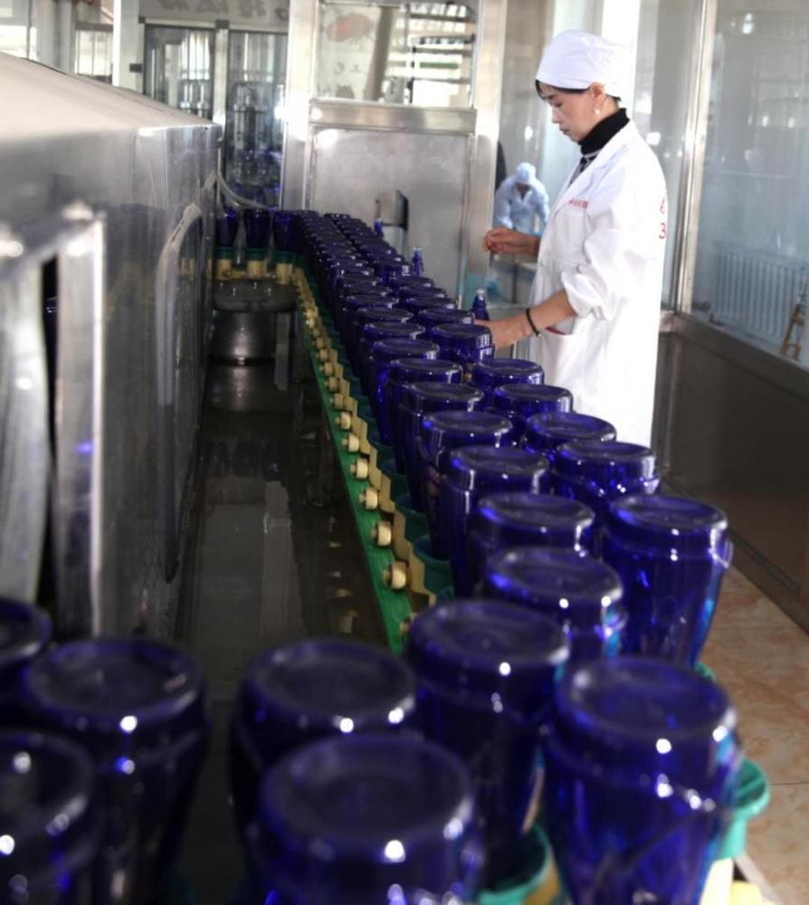 员工正在车间内进行清洗酒瓶、组装